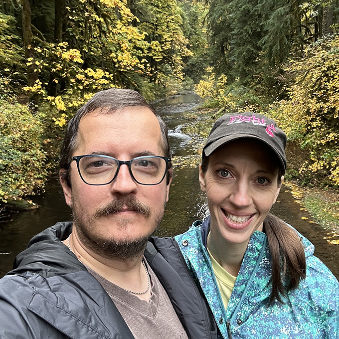 We are James and Christine. We hit the road in June of 2023 along with our fur boys Jäger, Coop and Toby. Christine is a travel nurse and James is a Digital Artist.